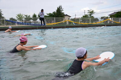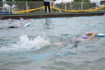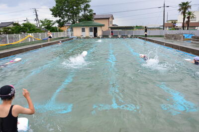 午前中の雨が上がり、午後は5・6年生が今年初めての水泳学習を行いました。準備運動を終え、キックの練習を始めると突然の驟雨。子どもたちは残念そうにプールから上がり、雨宿り。「パチ、パチ、パチ。」なぜか拍手を始めました。拍手の音が大きくなると、なんとあれだけ強かった雨が上がりました。拍手には、「雨よ、やめ。」という願いが込められていたのですね。再び、水泳学習を再開することができました。