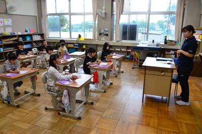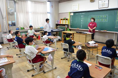 前年度に引き続き、本年度もEAAの先生が来てくださいました。今年、最初の授業は3年生でした。子どもたちも先生ともに英語の表現や歌を楽しんでいました。