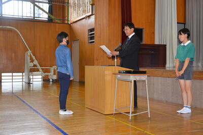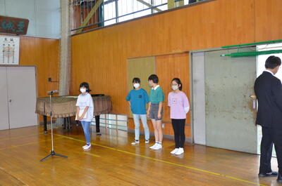 2023年6月19日 09時10分16日は全校集会でよい歯の表彰を行いました。はじめに「歯の大切さ」と「歯磨きとおやつの食べ方の工夫」についてお話ししました。その後、検診の結果がよかった児童を表彰しました。最後に養護教諭からクイズを交えて、自分の歯を大切にする指導がありました。歯はたくさんの働きをしています。ぜひ、いつまでも自分の歯で過ごせるようにしてほしいと願っています。