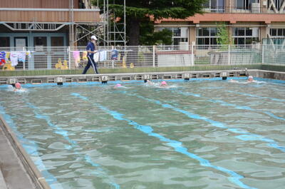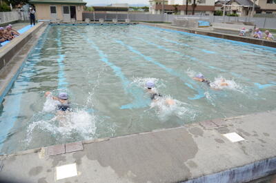 2021年7月15日 14時24分本日は3・4校時に中学年の校内水泳記録会が行われました。一人ひとりが自分のめあてに向かって一生懸命に泳ぎました。前の年に比べて泳力も向上し、50mや100mに挑戦する姿も見られました。また、友だちの応援に励まされ、これまでの記録を更新する姿も見られました。最後に、紅白対抗リレーを行いました。紅も白も全力で泳ぎ、走り、とても盛り上がりました。みんながとても頑張った記録会でした。