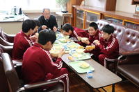 2019年3月11日 15時34分今年度の授業日は,今日で残り9日となりました。6年生が,楽しみにしていた校長先生との会食会が今日からスタートしました。元気よく校長室のドアをノックした6年生。いざ会食となるとちょっぴり緊張気味の子どもたち。校長先生と食べた給食の味は,緊張のあまり覚えていない?なんていうことはないと思いますが・・・・・・。6年生にとって楽しいひと時となりました。