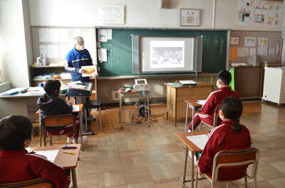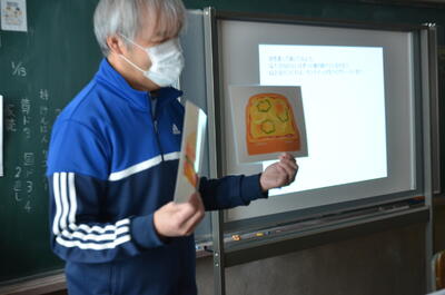 2022年1月14日 12時30分今日は3年生の教室を訪問しました。音楽で「せんりつの重なりや音の強さに気をつけてききましょう」の学習を行っていました。鑑賞する曲は、組曲「アルルの女」より「かね(カリヨン)」です。