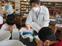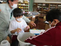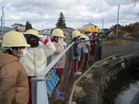 4年生は福島市土地改良区や県や市の農林担当の方においでいただき、栗本堰を訪ねる小学生勉強会で体験的に学びました。栗本堰は今から約200年前に栗本三左衛門という方が計画立案し、用水路を開削完成したものです。中でも円形分水工は大笹生と笹谷で協力して貴重な水を分けることができるよう先人の知恵が詰まっている施設でもあります。子どもたちは実際に頭首工や分水工を説明を聴きながら観察し、大笹生地区の農業の発展に水が欠かせないことや先人の郷土に対する思いや知恵を感じ取っていました。フィールドワークを終えて、次は学校で水の比較実験をしました。活動を通して、日本の水のすばらしさ、それを汚してはいけないことを学んでいました。