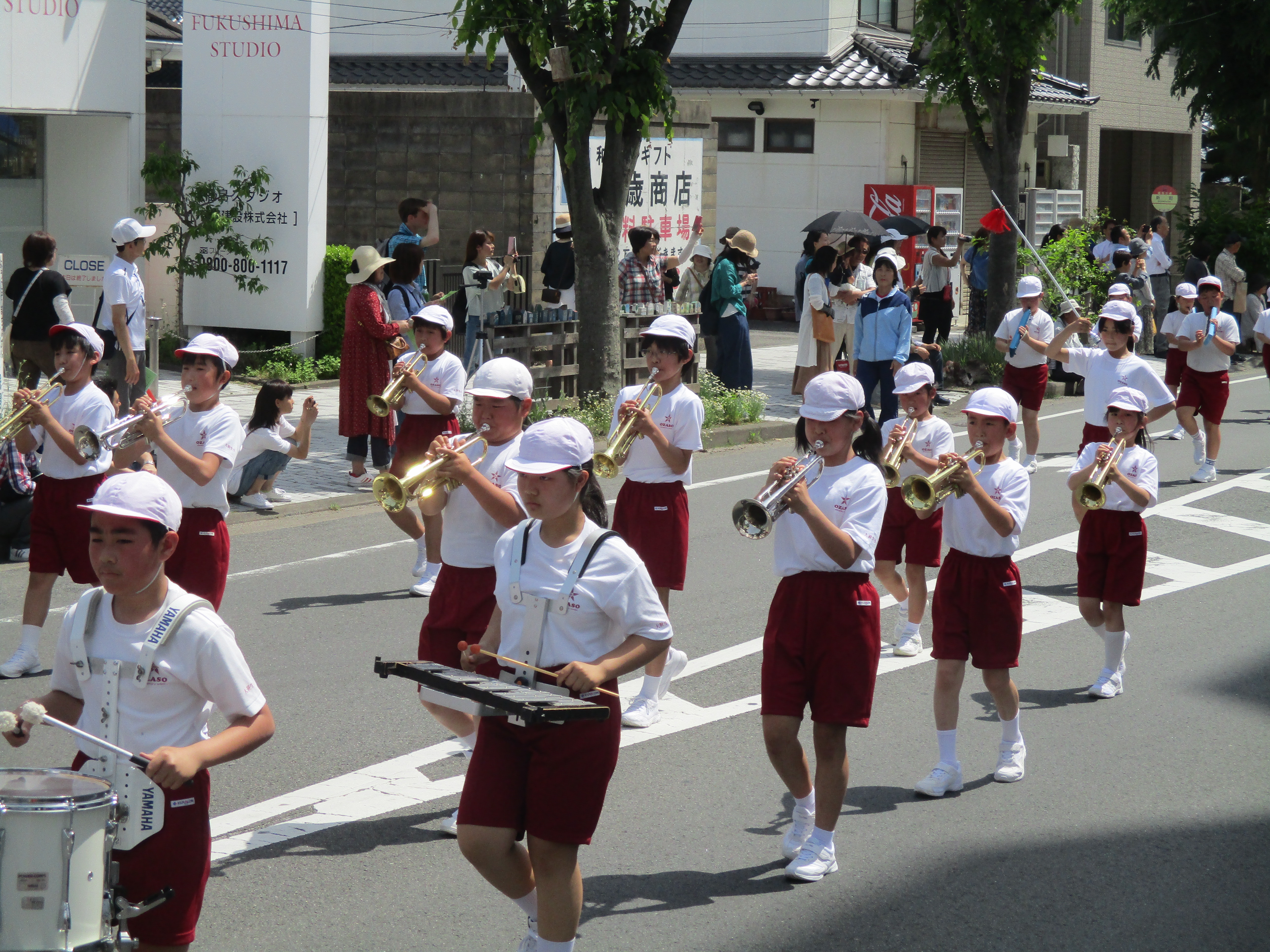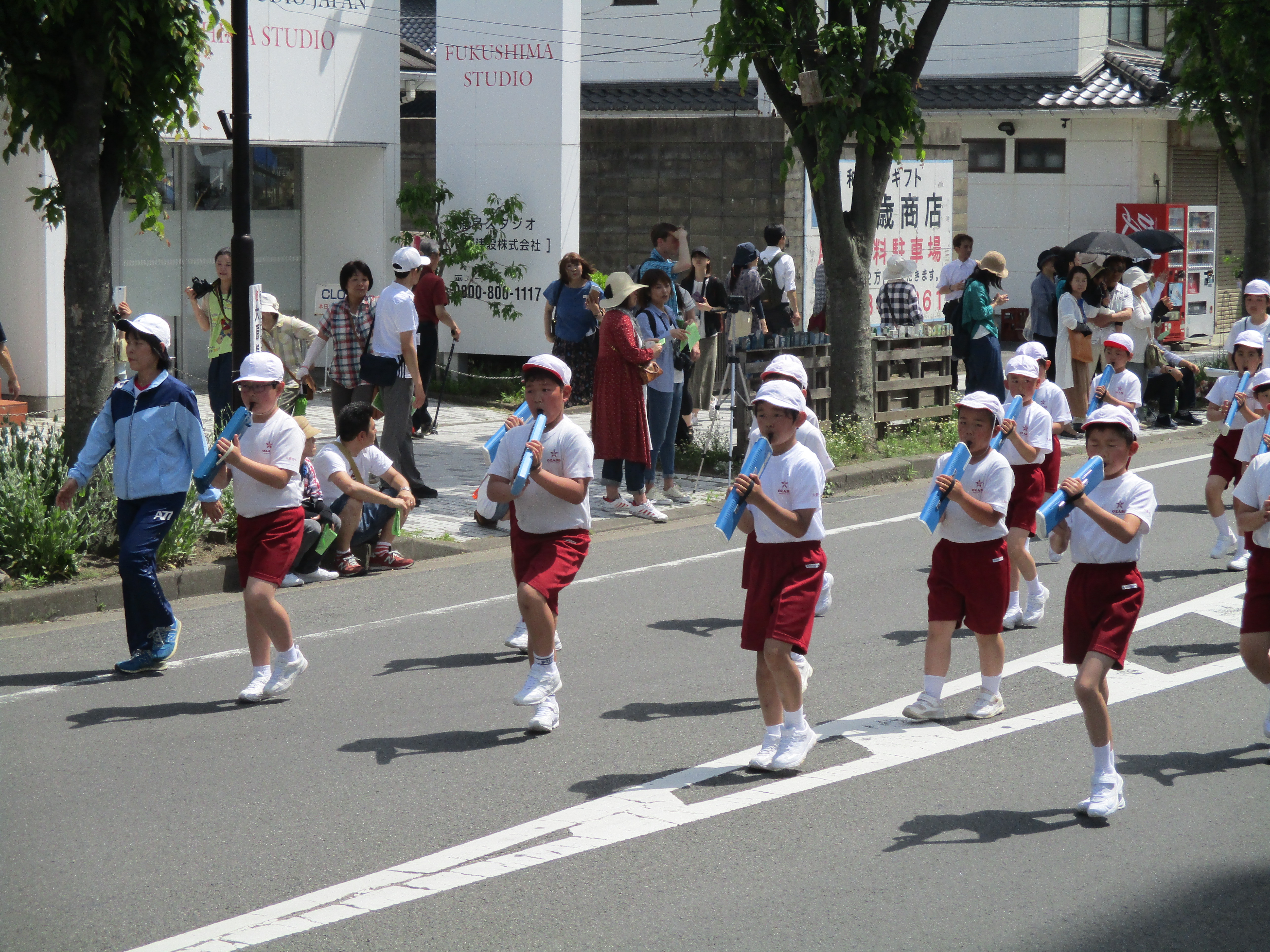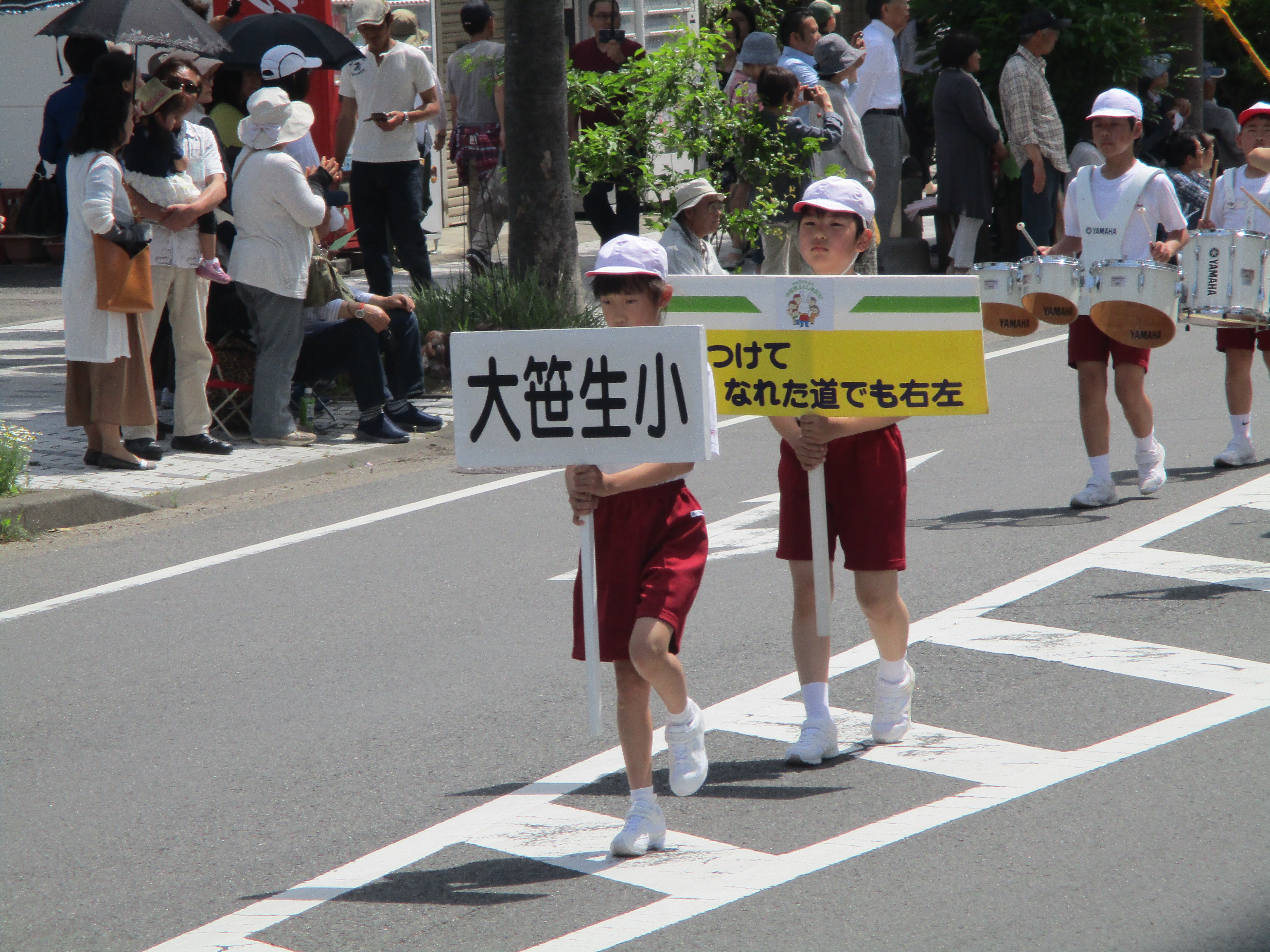 好天に恵まれ、福島市小学校鼓笛パレードが実施されました。本校からも、3~6年生が、心をひとつにして、すばらしい演奏を披露しました。演奏曲目は「負けないで」と「大笹小学校校歌」の2曲。昨年度から練習してきた成果が発揮された、堂々としたパレードでした。19日の運動会でもお披露目します。どうぞ、子どもたちのがんばりをご覧ください。