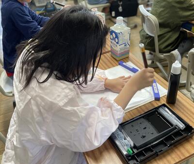 毛筆の学習を通して、えんぴつで文字を書くときの筆圧の加減や、文字の形などを整えるときの原則を学びます。