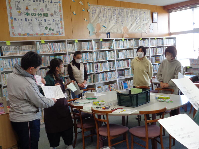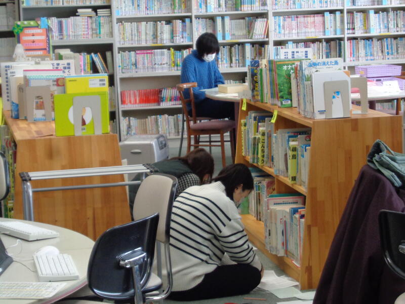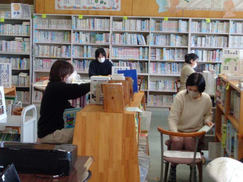 雪が降り、足元の悪い中11名のボランティアの方に、図書の背ラベルを貼っていただきました。ありがとうございました。