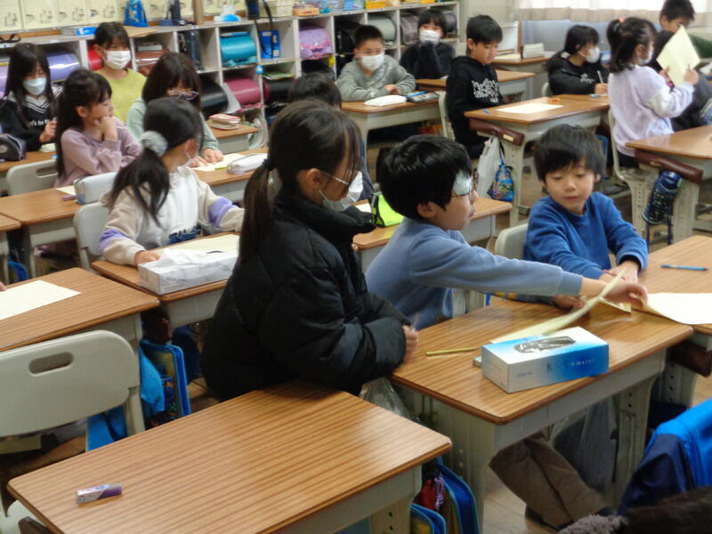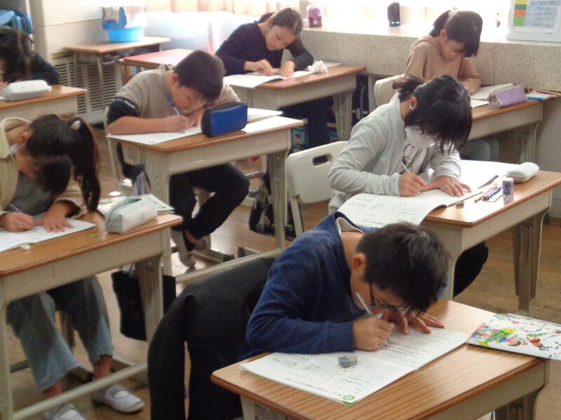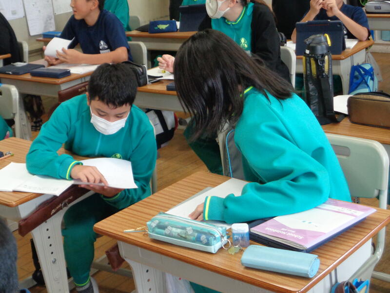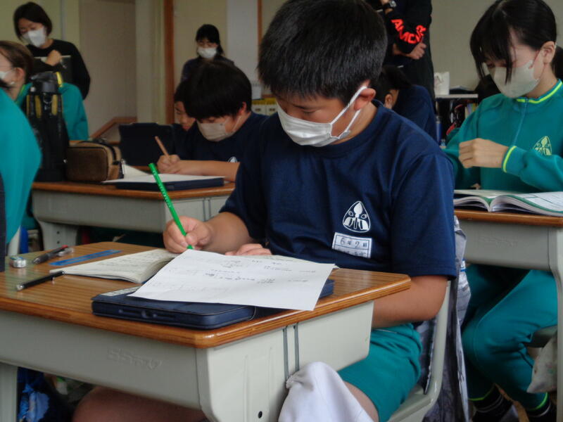 6年2組の3校時算数の授業の様子です。本気で最後まで課題に取り組んでいました。