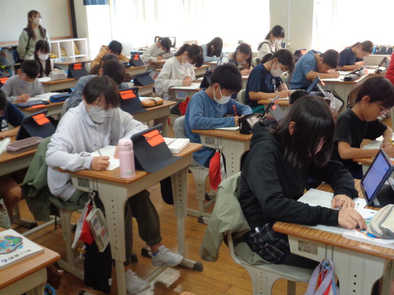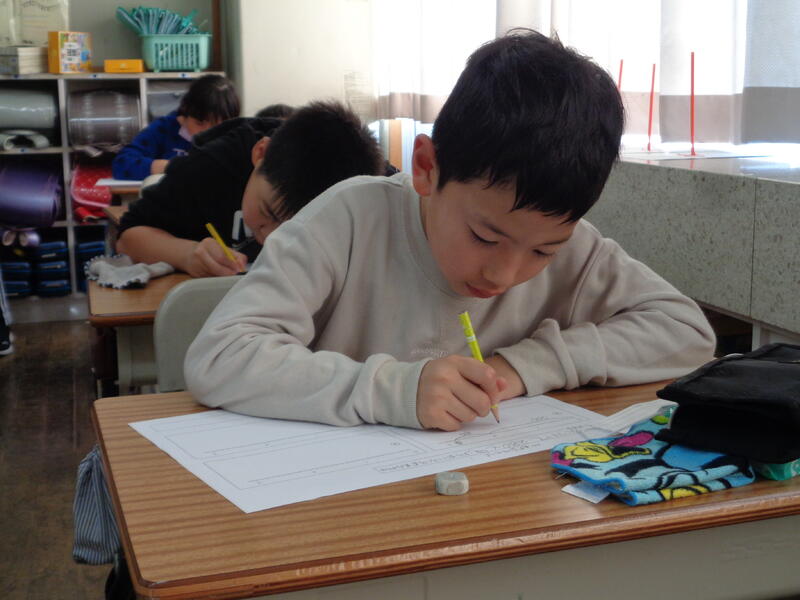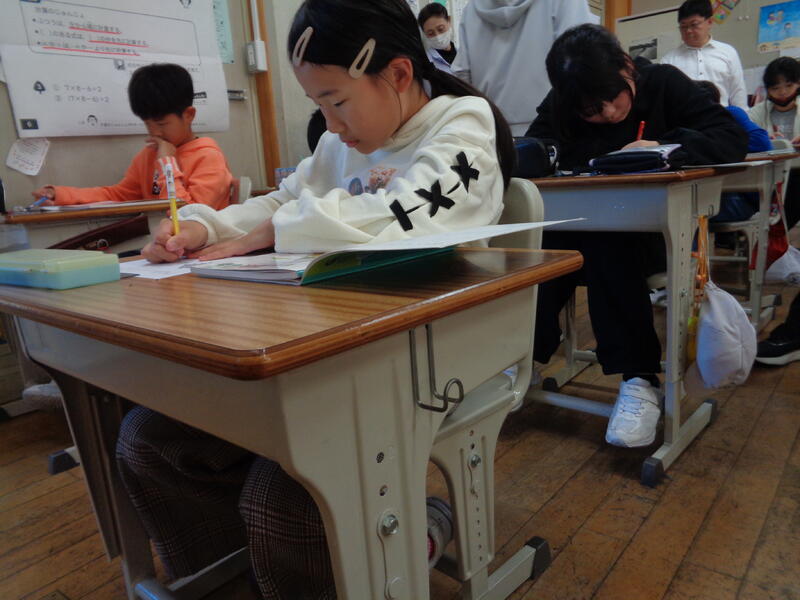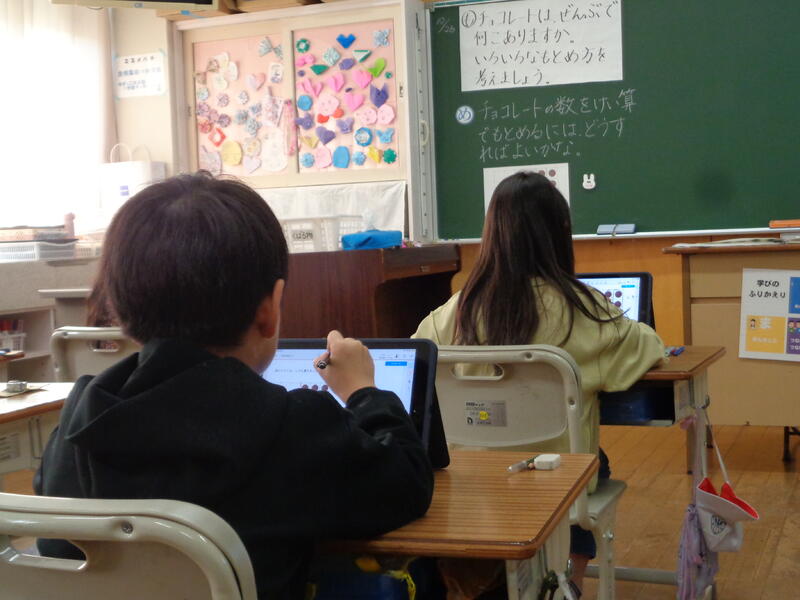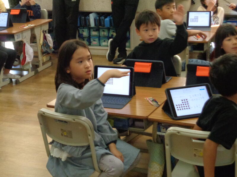 2年生の5校時算数の授業の様子です。本気で最後まで課題に取り組んでいました。