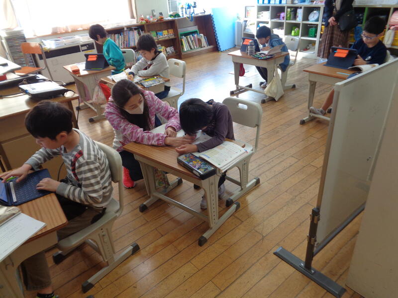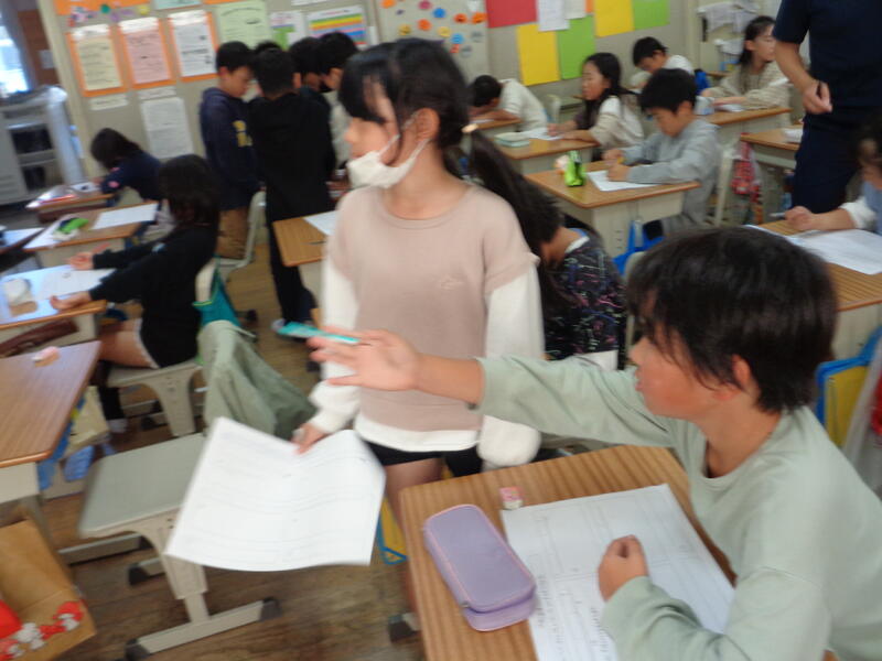 4年1組の5校時算数の授業の様子です。本気で最後まで課題に取り組んでいました。