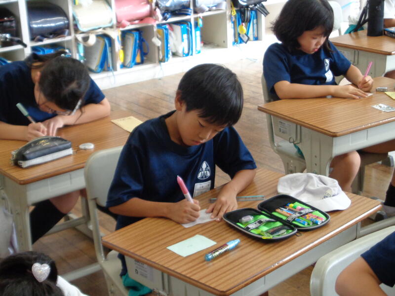 縦割り班ごとにお礼カードを書きました。後日改めて指導者の皆様にお送りします。