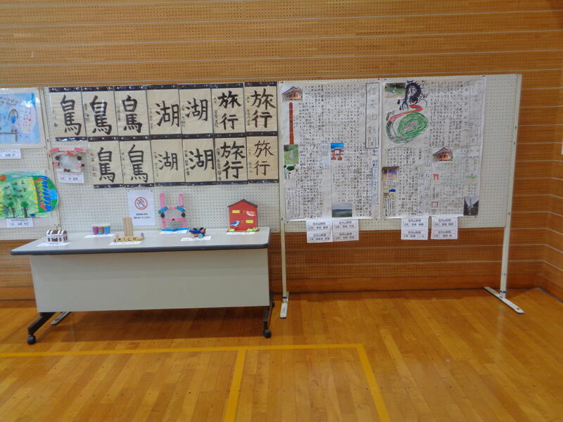 オープニングセレモニーで本校鼓笛隊が「校歌」を演奏しました。また、本校児童の書写や絵画、壁新聞などを出品しました。