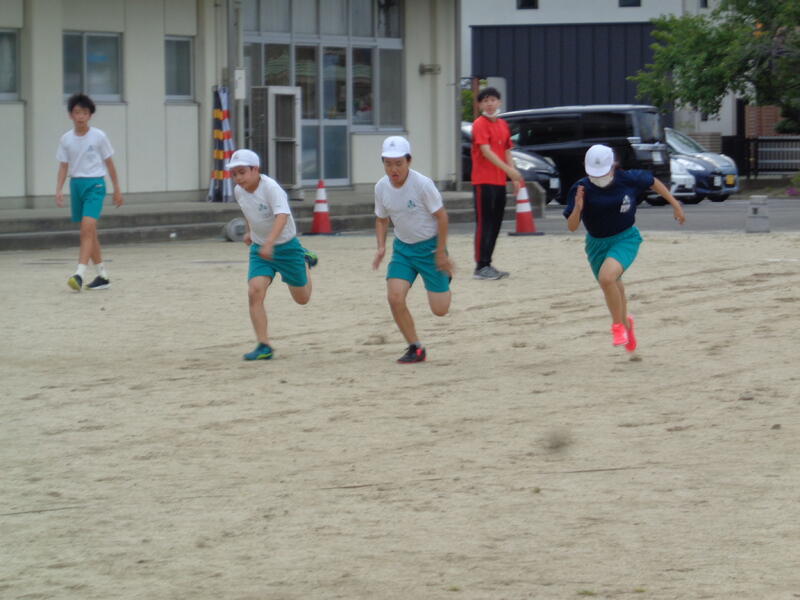 明日は福島市小学校体育大会陸上競技大会です。選手の皆さん、自己ベスト更新を目指して頑張ってください。