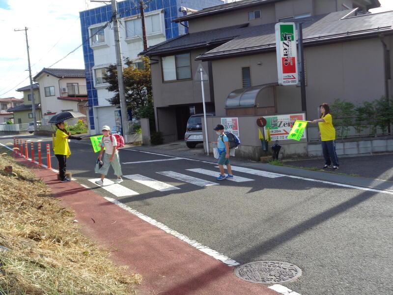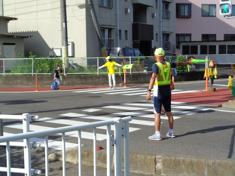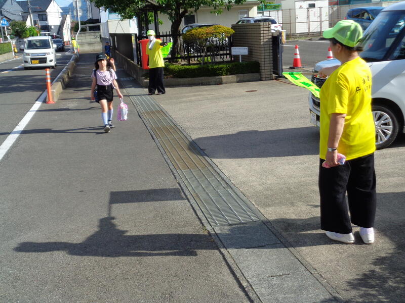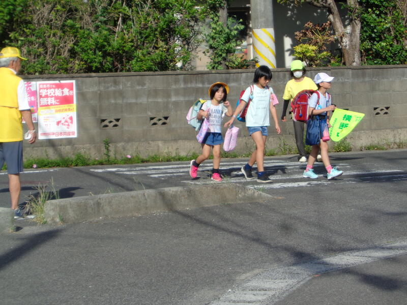 本日も朝から日差しが強く暑い中、交通安全母の会、交通教育専門員、見守りボランティアの皆様には、学区内各所で交通事故から子どもたちを守る活動をしていただきました。子どもたちの安心・安全はこうした地域の皆様に支えていただいています。ありがとうございます。