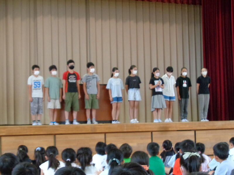 3名の児童が「1学期の反省と夏休みの抱負」を発表しました。