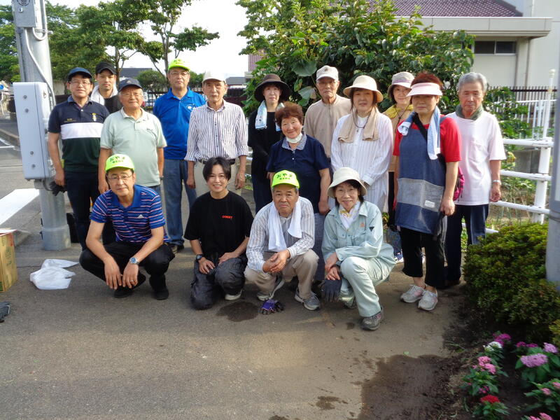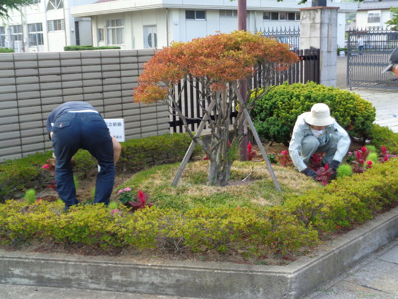 昨日の日曜日、午前6時より、御山小学校区青少年健全育成推進会環境浄化部の皆様に、歩道花壇と校門花壇の除草、そして花苗の植え付けをしていただきました。暑い中ありがとうございました。