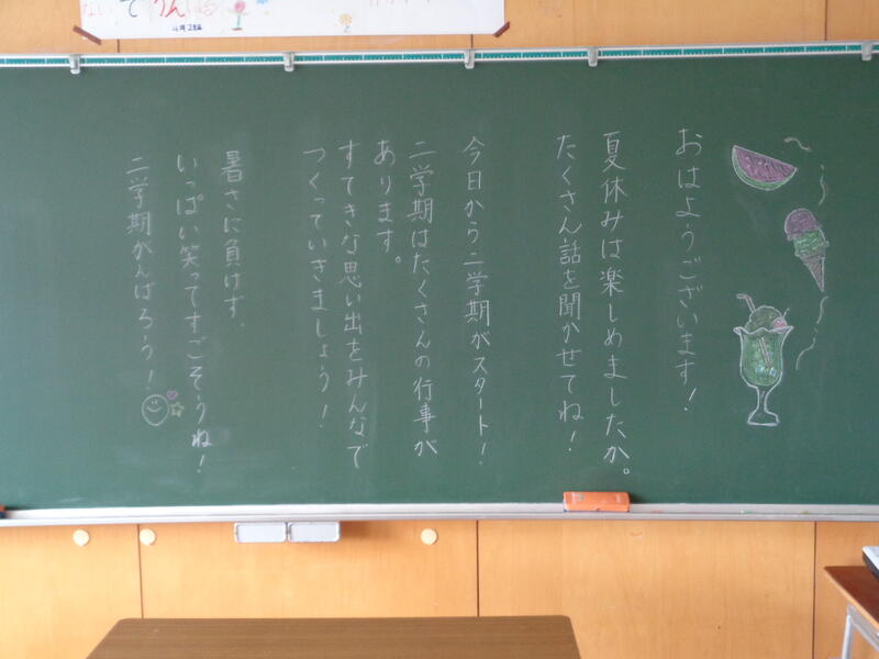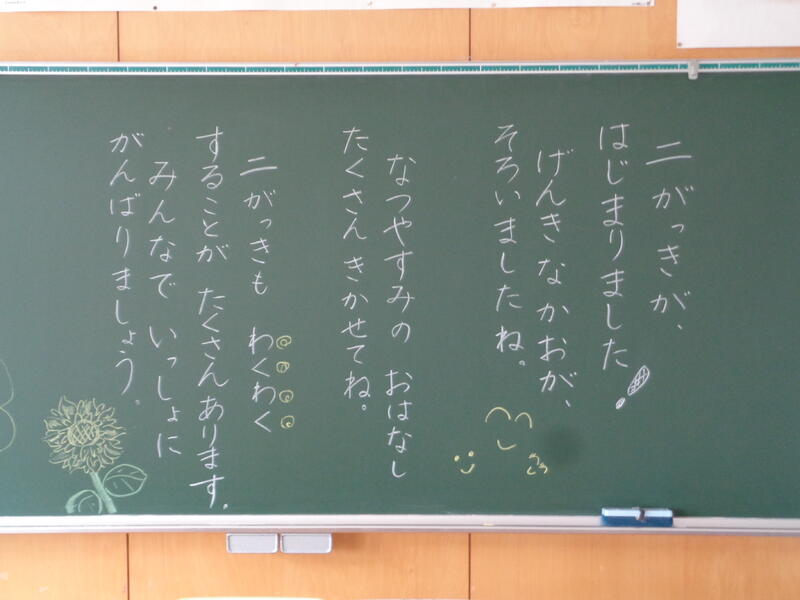 子どもたちを担任からのメッセージが迎えました。