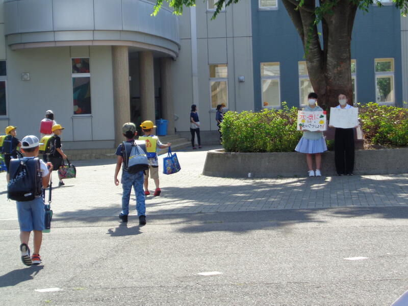 16日(日)から、夏の交通事故防止県民総ぐるみ運動が始まりました。御山小学校区交通対策協議会、交通安全協会、交通安全母の会、交通教育専門員、見守りボランティアの皆様には、学区内各所で交通事故から子どもたちを守る活動をしていただいています。ありがとうございます。