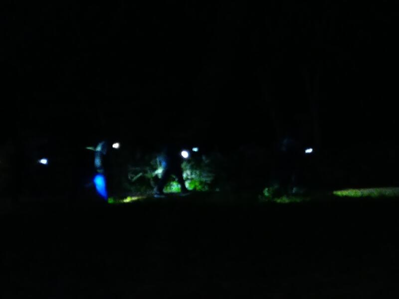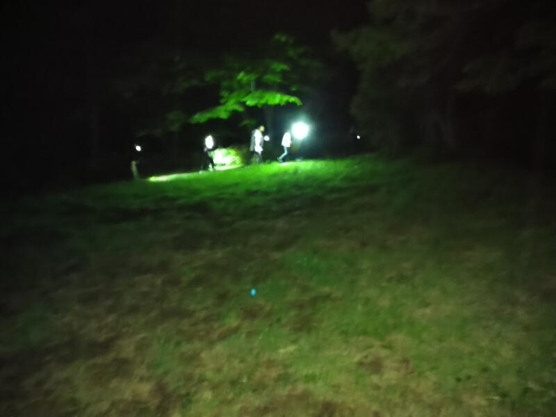 小雨が振り、暗闇の中、声をかけあって歩いていました。