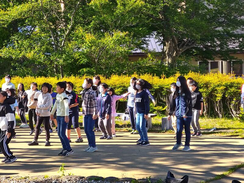 快晴です。朝食を終えました。これから最後の活動、なつかしの森ココドコです。