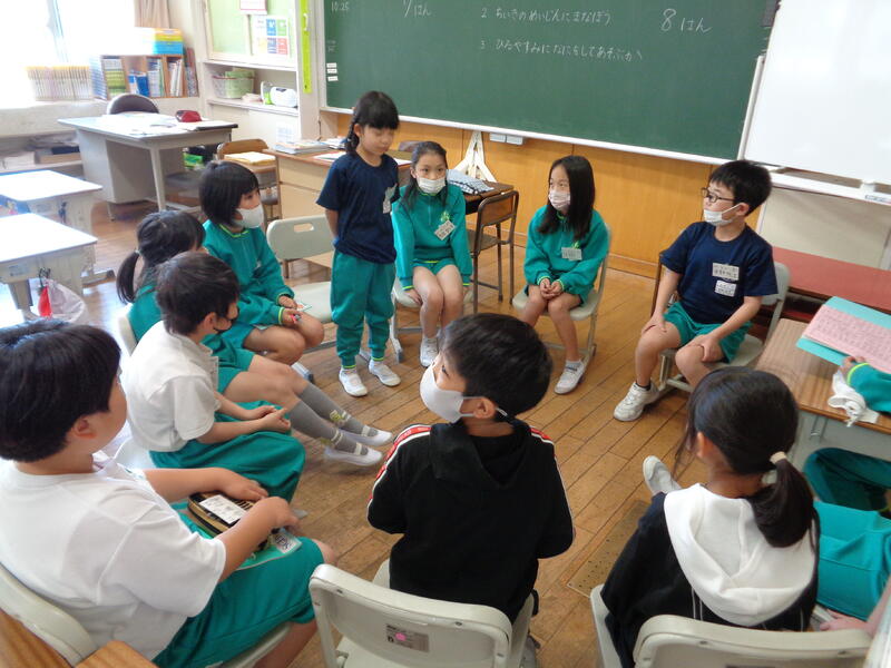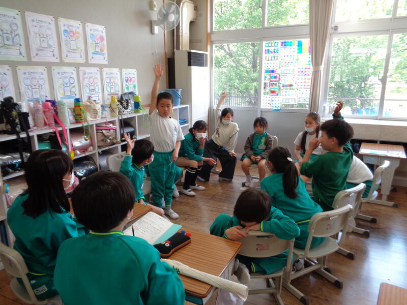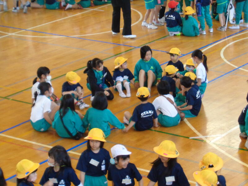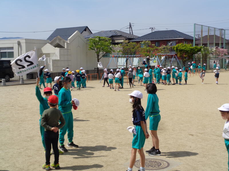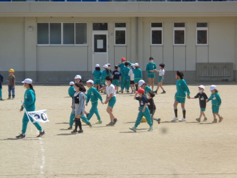ゆずっこ班(1年生から6年生までの縦割り班)顔合わせ会を行いました。去年よりも1か月早いスタートです。6年生が1年生を迎えに行き、自己紹介後、「地域の名人に学ぼう」で行いたい活動を選び、班ごとに遊びました。