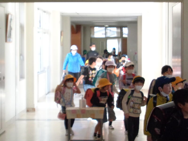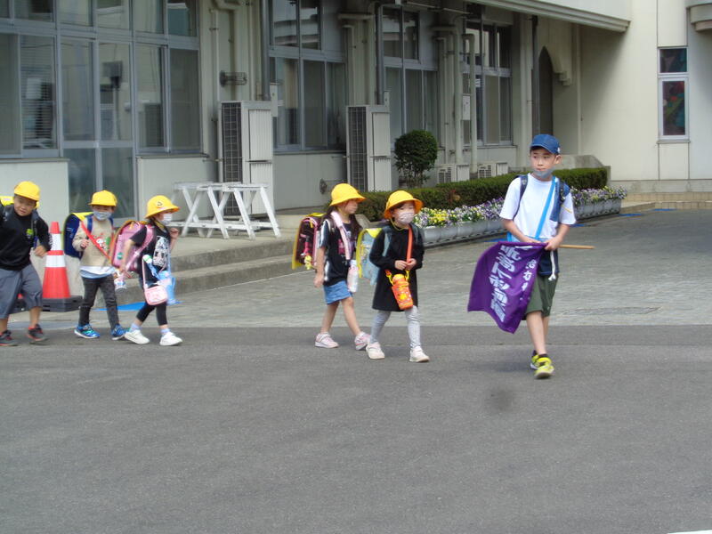 昨日の交通教室では、方部ごとに分かれて集合し、それぞれの担当と一緒に、危険箇所を確認しながら、下校をしました。不審者情報等があった場合など、安全確保のためにこのような一斉下校を実施します。見守りボランティアのみなさまにもお世話になりました。ありがとうございました。