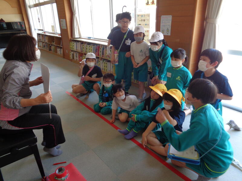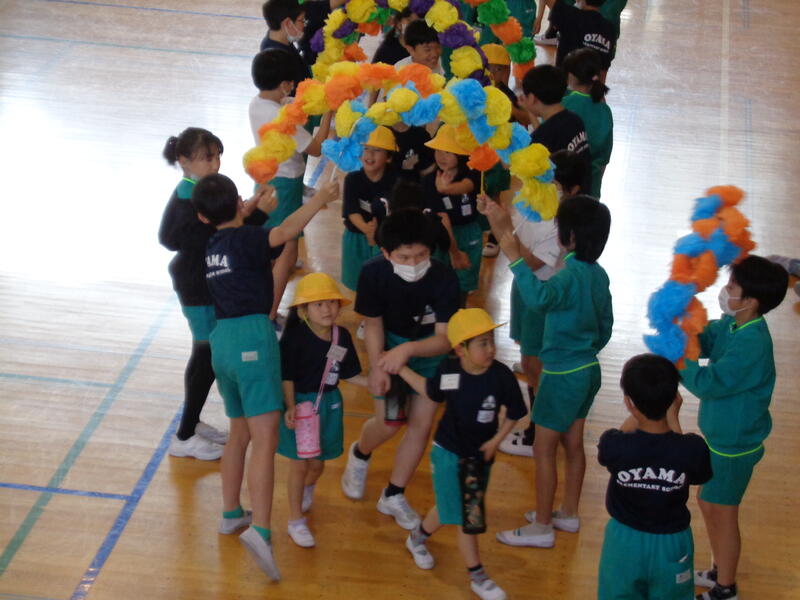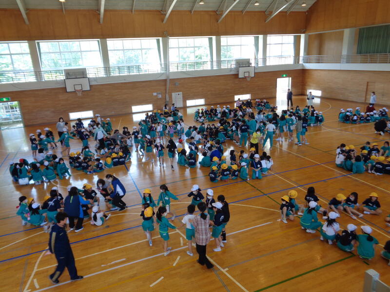 1年生は、ゆずっこ班の班長と手をつないで入場しました。企画委員が考えたゲームで体育館は笑顔でいっぱいになりました。ゆずっこ班で、職員が出した15の問題を解きながら校舎内外を歩きました。異学年で協力しながら、学校のことを楽しく学ぶことができたようです。