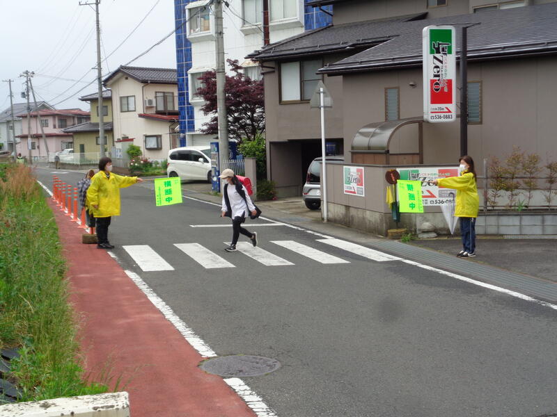 交通安全母の会、交通教育専門員、見守りボランティアの皆様には、学区内各所で交通事故から子どもたちを守る活動をしていただいています。子どもたちの安心・安全はこうした地域の皆様に支えていただいています。