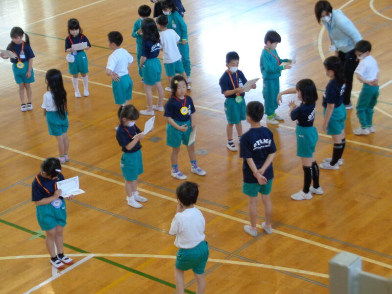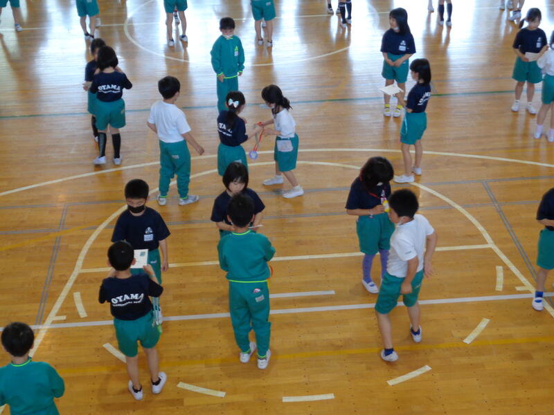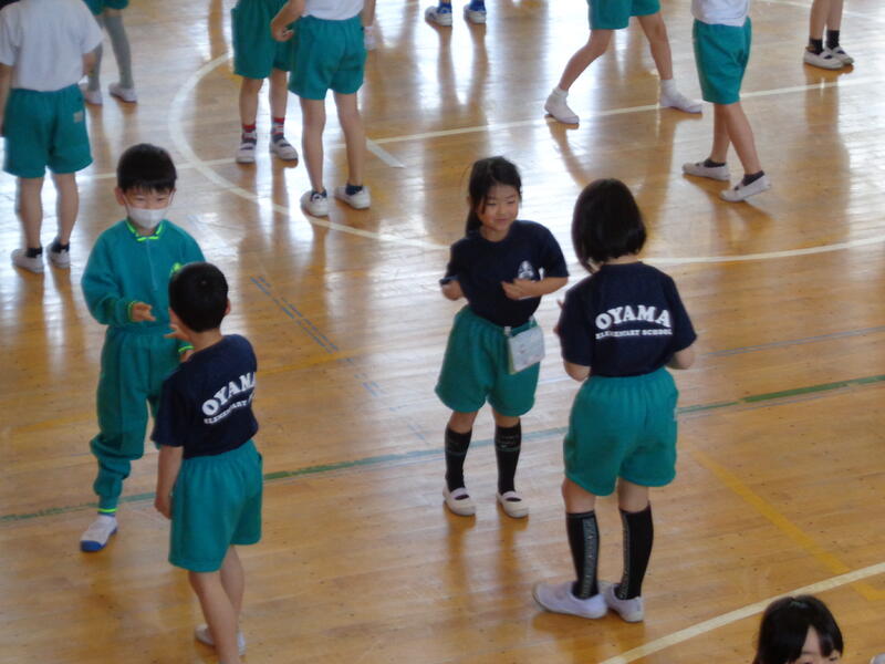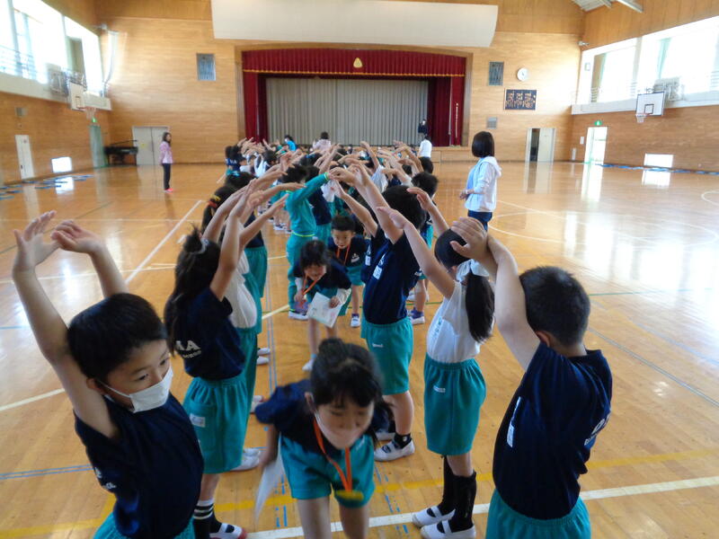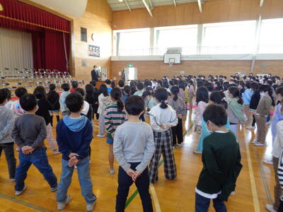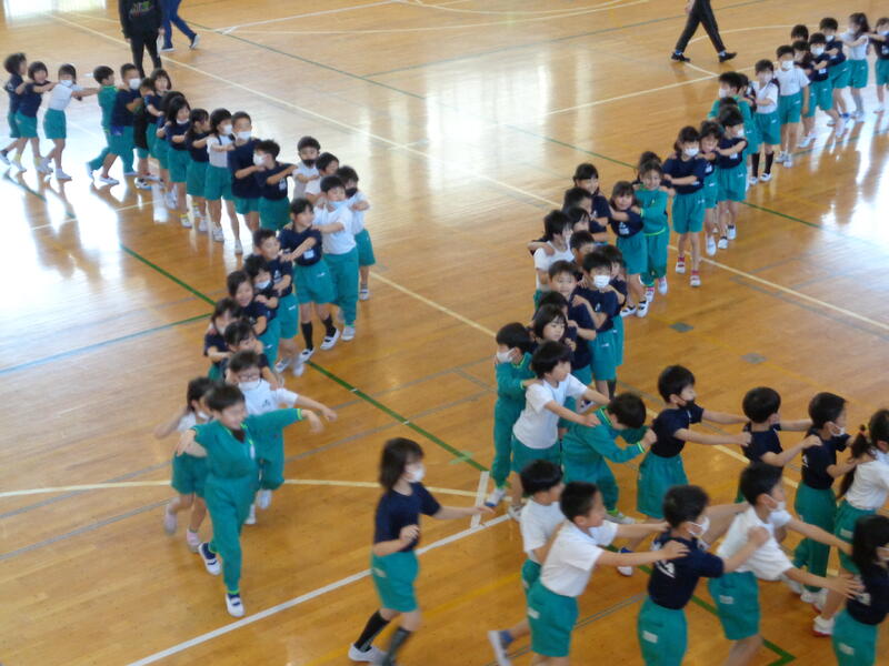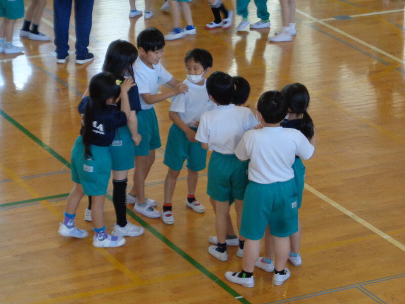 2023年4月20日 17時24分自己紹介して始まりました。「あっち向いてほい」「じゃんけん列車」で体育館内は笑顔でいっぱいになりました。2年生から1年生に首飾りと朝顔の種をプレゼントしました。2年生は他にも校歌やダンスを披露しました。和やかな雰囲気で行われた1・2年生 仲良くしようね会でした。とても心温まる会になりました。お兄さん、お姉さんになった2年生の成長を感じることもできました。