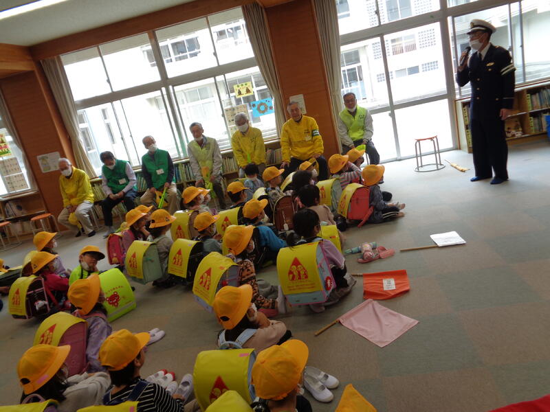 1年生と交通教育専門員、見守りボランティアの皆様との顔合わせ会を行いました。子どもたちの安心・安全はこうした地域の皆様に支えていただいています。今年度もよろしくお願いします。