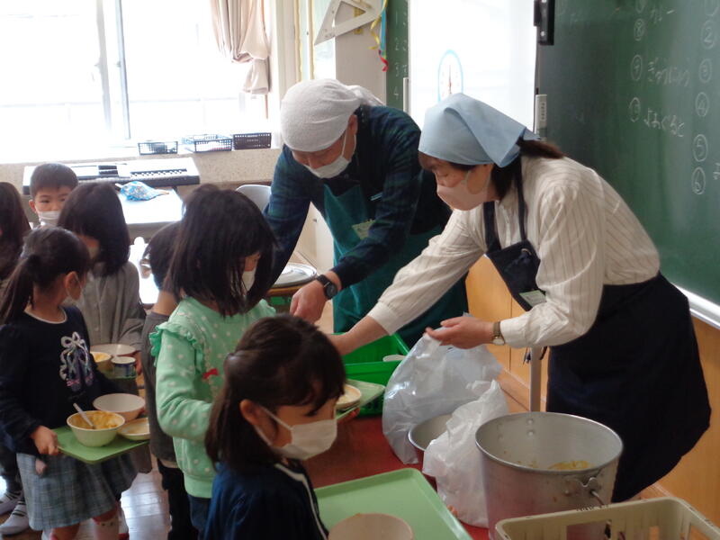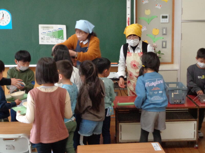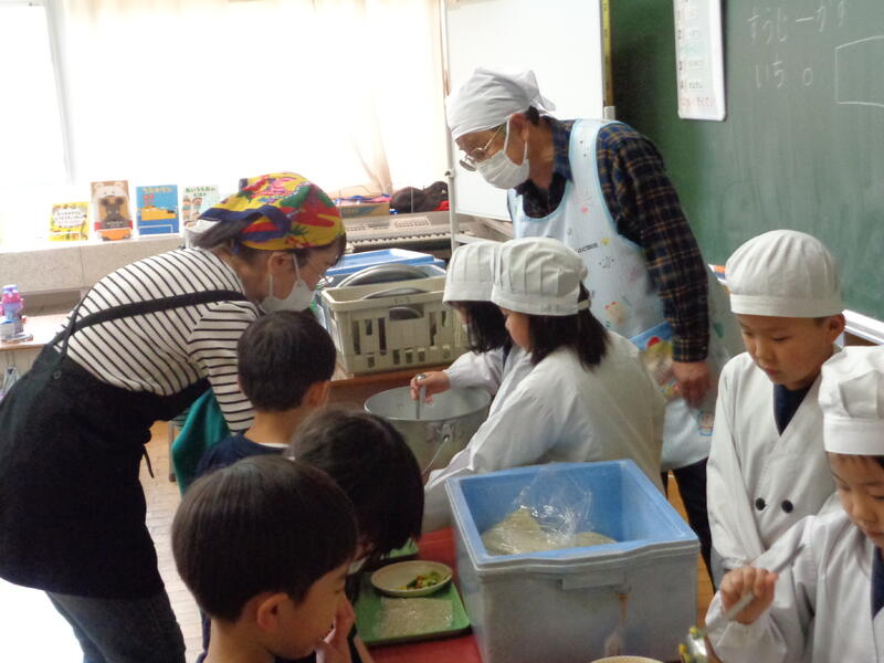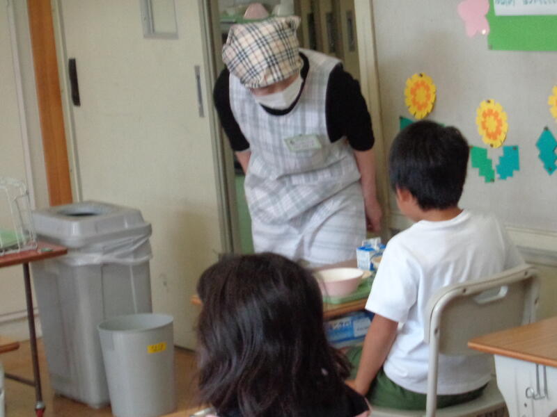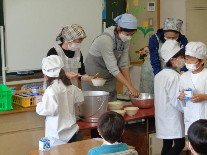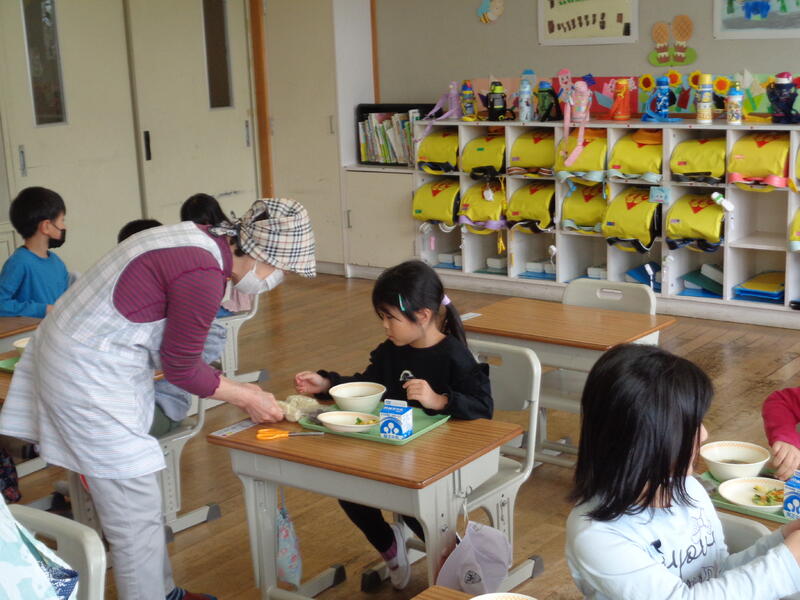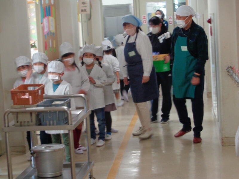 先週、延べ18名の方に1年生の給食時にボランティアしていただきました。ボランティアの皆さんが、「ソフト麺デビュー」で心配だからと本日も来てくださいました。初めは手間取っていた子どもたちがスムーズになってきた姿を見て、ボランティアの皆さんは喜ばれていました。