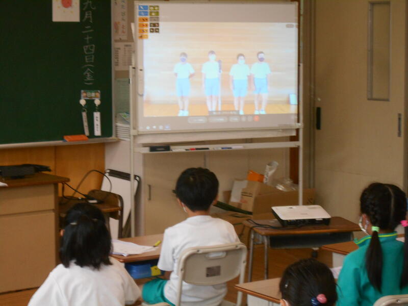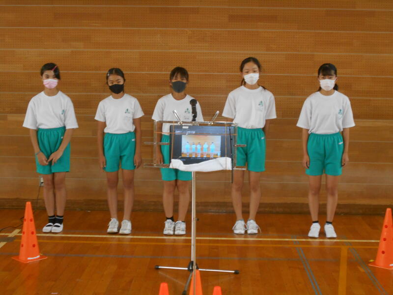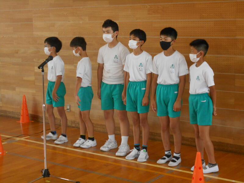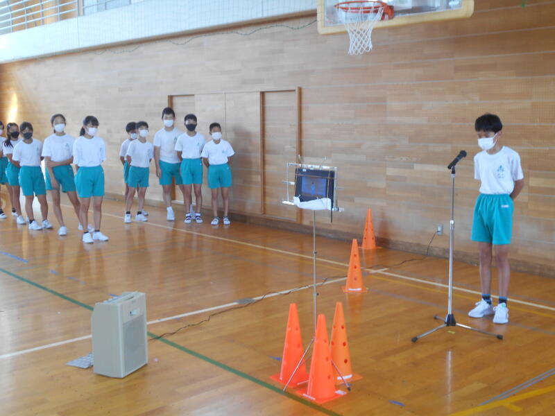 体育館と各教室をリモートでつなぎ、選手壮行会を行いました。選手一人一人を紹介し、選手代表児童があいさつをしました。