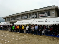 水たまりのできた校庭をPTAの皆さんをはじめ、たくさんの方々がスポンジとぞうきんで水の吸い取り作業を展開するとともに、町内会連合会会長、副会長の皆さん、地区体育協会、福島第四中学校さんから協力を得て児童用テント5張を準備することができ、本当にありがたかったです。