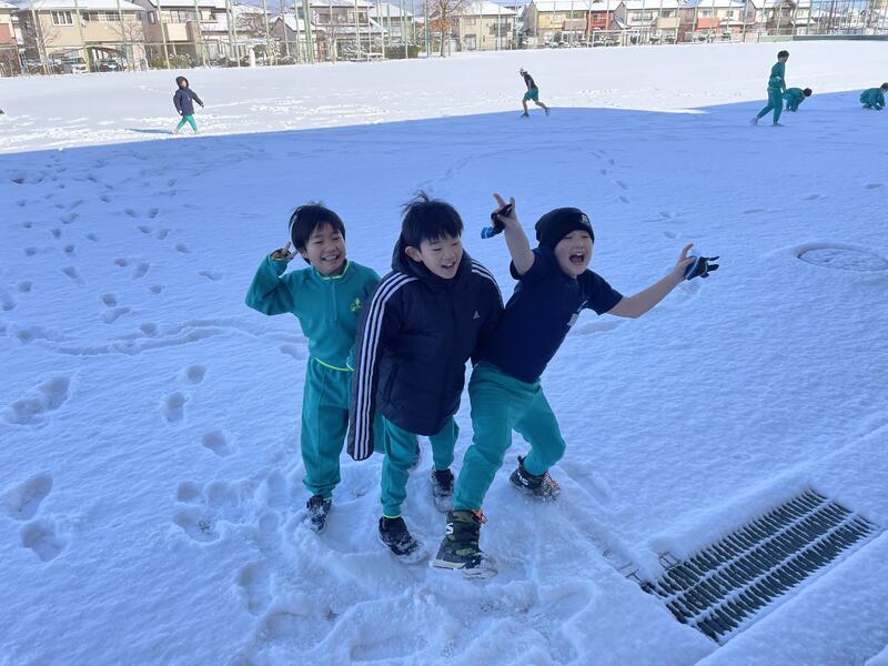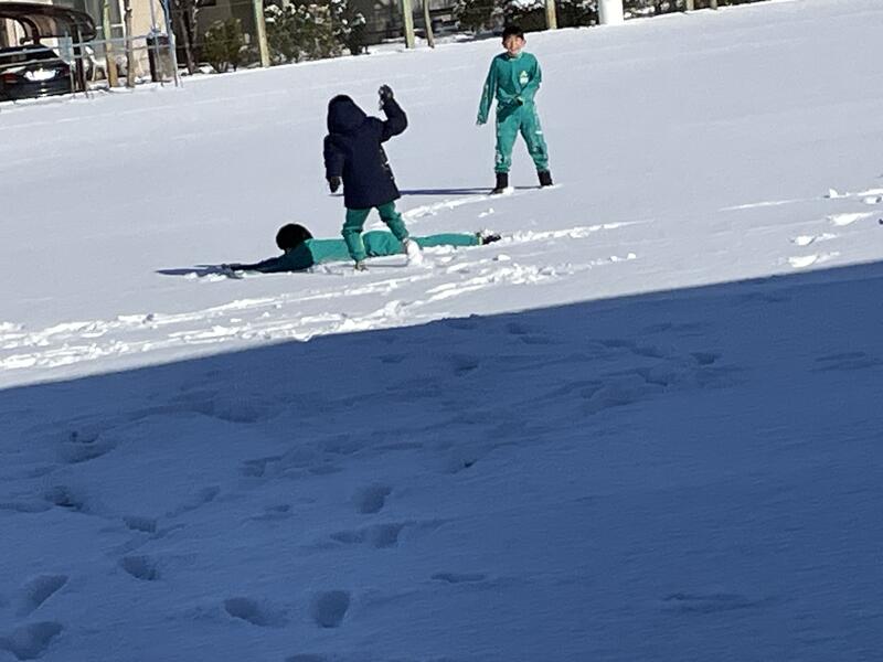 雪だ! 2025年1月10日 10時54分 2校時が終わるチャイムの音ともに元気な子どもたちが駆け出します。一番乗りを果たして、早速ダイブ 元気です嬉しそうです。そんな子どもたちを見ていると私も嬉しくなります
