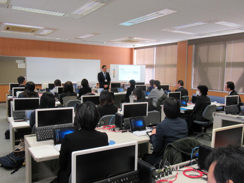 令和2年1月21日(火)に第9回タブレットPC研修を開催しました。電子黒板ユニットの操作やデジタル教科書の活用、学習支援ソフト(スカイメニュー)の操作について、研修を行いました。