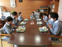 6年生と校長との会食をしました。ひな祭り献立でした。「小学校の給食もこのあられで終わりかぁ。」6年生の言葉です。中学校、また、その先へ、希望をもって進んでください。