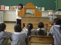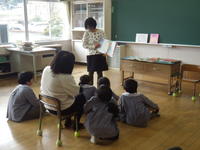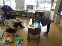 ◇1・2年生は「お話の会」がありました。今月のテーマは「鬼」。「鬼」が出てくる本をたくさん紹介していただきました。紙芝居も楽しみました。最後は、自分が紙芝居を読みたいと人気の紙芝居セットでした。