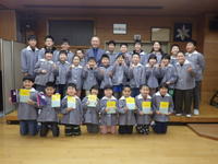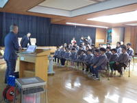 ◇2月3日、全校朝の会を行いました。シルバータロウ賞には2名の児童が紹介されました。