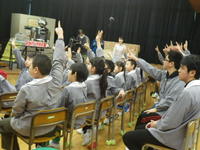 子どもたちはさっそく昼の放送で感想インタビューをしていました。「白い虹・夜の虹・火山・噴火・地震・地震は予報できない・断層・避難・2階に逃げる・たんすのある部屋では寝ない・スリッパを置いておく・ハイブリッドベアー」などのキーワードで感想発表をしていました。
