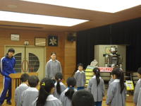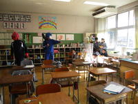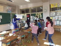 児童会の活動の一つとして豆まきを各学級で行いました。高学年児童は特別教室などにも豆をまき、福を呼び込んでくれました。さらに、スペシャルエキストラ扮する赤鬼・青鬼の登場に子どもたちからは歓声が上がり、力のこもった豆まきが繰り広げられました。