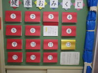 ◇3学期が始まり8日目となり、学級の掲示物も充実してきました。保健室前の「健康おみくじ」も人気です。