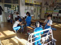 鼓笛のパート練習を行いました。新しいパートを担当する児童には、6年生や、すでにそのパートに慣れている児童が直伝で教えます。1年生も鍵盤ハーモニカを担当します。