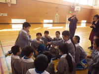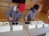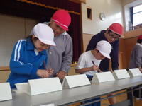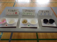 1・2年生は発砲ポリスチレン製のスポンジ、3・4年生はから付落花生、5・6年生は金時豆を隣の器に移し変えます。縦割り班の班長さんが下級生を応援します。正しいはしの持ち方、ご家庭でもできているかチェックお願いします。