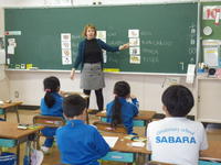 ◇10月29日、ALTのジョアンナ先生との学習がありました。どの学年も先生の発音をまねて、何度も練習しています。”th~”や ”v”、”z” … などなど日本語にはない口形や筋肉の使い方ですが、楽しく繰り返し発音しています。1・2年生も、ゲームを楽しみながらアルファベットを少しずつ身につけていきます。