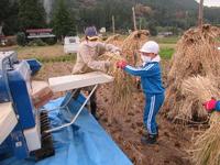 2019年10月25日 18時00分◇10月24日、3・4年生が学校田の稲の脱穀を行いました。台風19号の被害も、週末の雨の被害もなく、無事に脱穀することができました。子どもが、自分で、大きな音の出る機械を使うという経験はなかなかありません。稲わらから米が分離する、籾殻が舞う、それを体感する…とてもすばらしい経験です。米粒となるまでの道のりや、残ったわらの処分方法など、これからも学ぶことはたくさんあります。