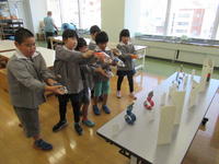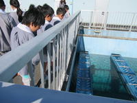 こむこむ館では、プラネタリウム鑑賞、ペットボトル空気砲製作を楽しみました。すりかみ浄水場では、水をろ過し、水道水として市内へ送り出す浄水場の仕事を学びました。体験用の大きな水道管本管をくぐって、その大きさに目を丸くしていました。