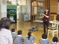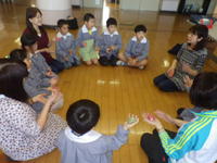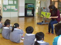 2019年10月11日 09時20分◇10月10日、1・2年生はお話会に参加しました。今日のテーマは秋の実り、いろいろな木の実を見せていただきました。胡桃の硬さに子どもたちはびっくり。機会があれば、ぜひご家庭でも体験させてあげてください。