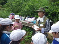 荒川資料室の方と川の案内人さんに教えていただきました。荒川は流路が短く(29.4Km)、傾斜が大きいため暴れ川となることでも有名ですが、「水質日本一」に輝くことも私たちの郷土の誇りです。パックテストで水質を検査したり、佐原側への支流に住む生き物をさがし、観察したりしました。川と私たちの暮らしや、川をきれいにするために自分たちができることを考えていきます。