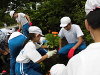 ◇7月5日、「道で咲かせよう 東北の花プロジェクト 定植イベント」に3~6年生が参加しました。