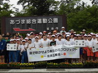 近隣の小学校や地域の皆様と一緒に、育てた花を、あづま運動公園入り口交差点の花壇に植え替えをしました。3000株以上の花苗があったそうです。おもてなしの心で福島においでになる方を迎えます。