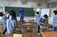 インフルエンザ予防のため,学級ごとに豆まきをしました。青鬼が,各学級を回りました。